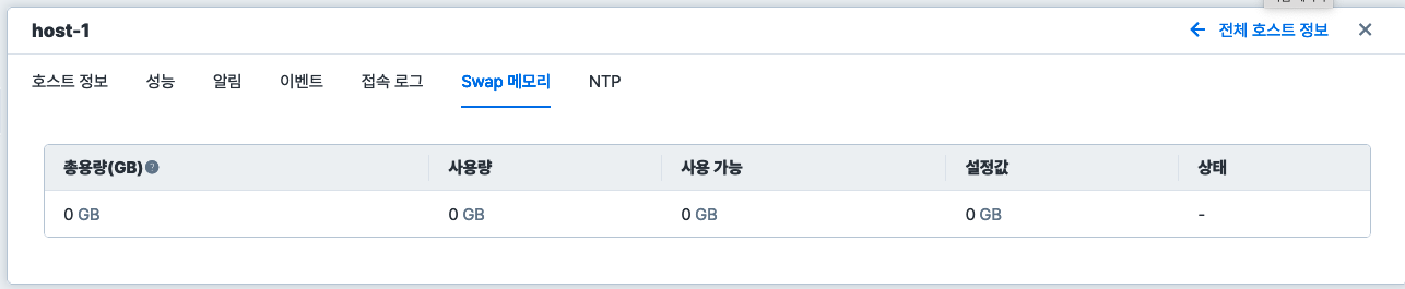 물리 호스트에 설정된 Swap 메모리 정보를 확인하려면 화면 하단의 Swap 메모리 탭을 클릭합니다.