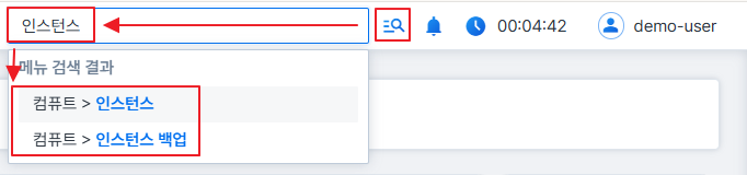 • 메뉴 검색: 메뉴 이름을 검색하고 마우스를 클릭하여 이동