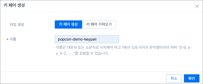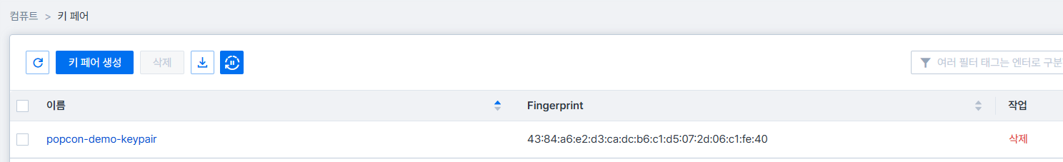 popcon-demo-keypair라는 이름의 키 페어가 생성됩니다.
