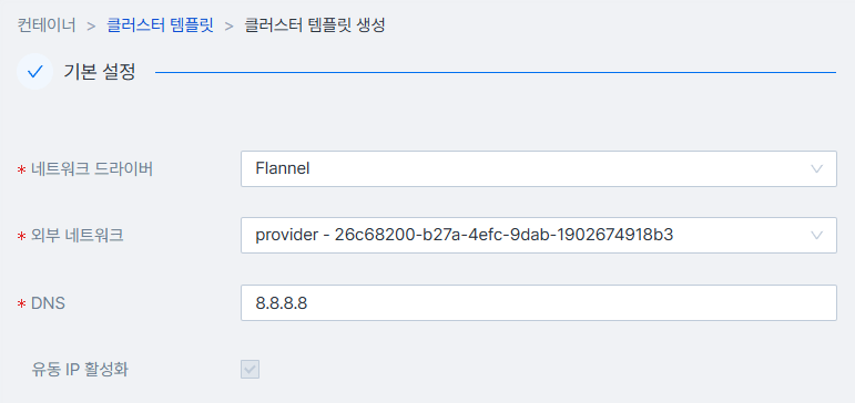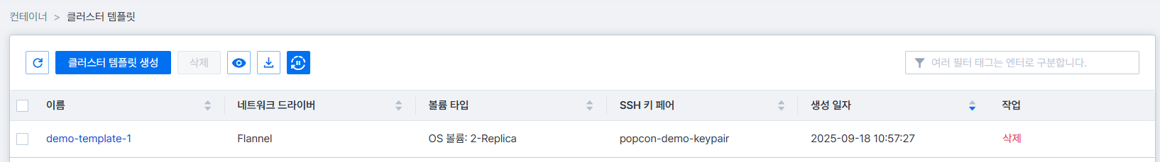 컨테이너 클러스터 템플릿이 생성됩니다.