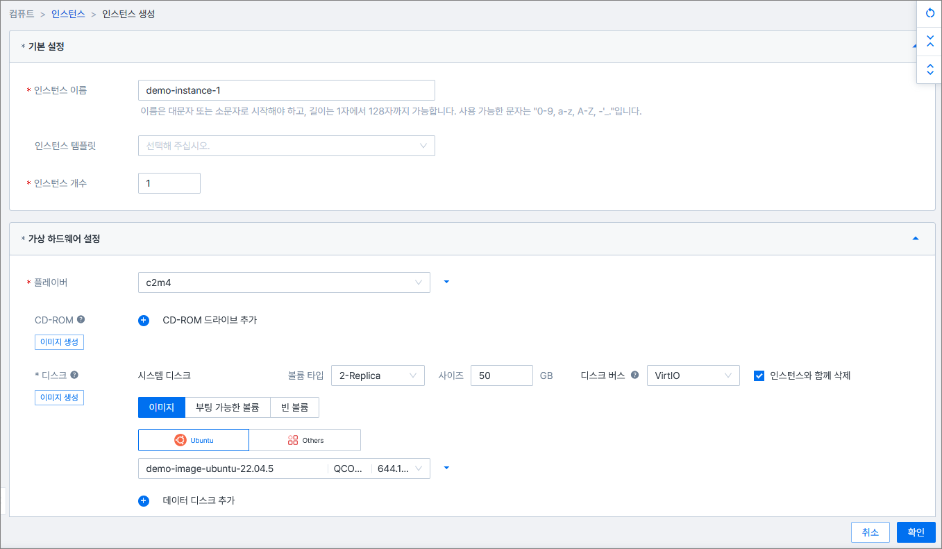 인스턴스 생성에 대한 상세한 설명은 인스턴스 설정 가이드 페이지를 참고합니다.