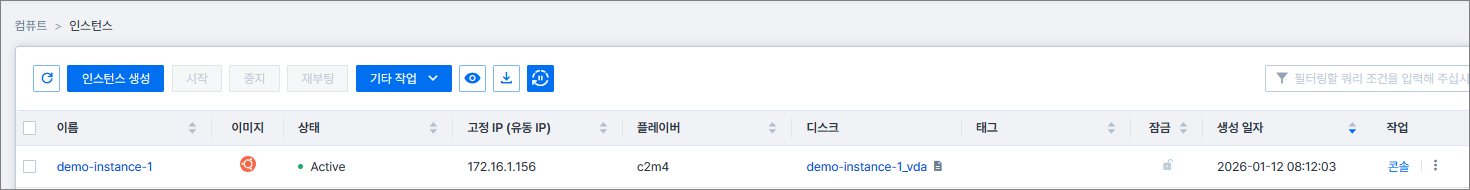 1. 사용자 모드 > 컴퓨트 > 인스턴스 메뉴를 클릭합니다.